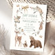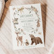 Sweet gender neutral woodland animals themed baby shower invitation featuring various woodland animals, butterflies, bow and wreath.