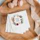 Hochzeitsnapkins sind mit einem Monogramm der Braut- und Bräutigamen personalisiert, gerahmt von einem wunderschönen rustikalen Kranz aus Sommer und Herbst, Blume in Aquarellfarben, Rose, Dahlien, Peony Blume und Grünpflanzen, in einer wunderschönen Herbstpalette aus bordeauxroten, goldgelben, pfirsichfarbenen, rot rosa und grün.