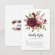 Elegante rustikale Hochzeitskarten mit einem schlichten, weißen Hintergrund, der in jede Farbe verändert werden kann, einem Spray aus Marsala Rot, Bordeaux & Rosa Aquarell florale Blume und einer eleganten uAwg Vorlage. ============================================================================================== Für weitere Personalisierung klicken Sie auf den "Anpassen"-Knopf diese Vorlage. Alle Textstile, Farben und Größen können nach Ihren Wünschen angepasst werden. Weitere passende Hochzeitsartikel findest du in meinem Shop www.zazzle.com/special_stationery, aber wenn du nicht findest, was du suchst, kontaktiere mich bitte.