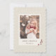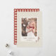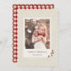 Carte photo de vacances rustique en toile de burlap avec branche de baies rouges d'hiver et motif de plaid rouge à l'arrière.