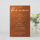 Rustic Burnt Orange Simple Autumn Mariage Bar Menu
