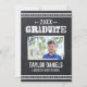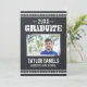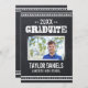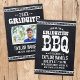 Cool rustique graduation barbecue invitation à la fête de barbecue avec la typographie vintage en détresse sur un faux arrière - plan de tableau de bord. Ajoutez votre photo principale, votre nom, votre année de classe et le nom de l'école sur le côté avant avec les détails de votre fête de remise de diplômes sur le dos. Cliquez sur Customiser pour ajouter d'autres photos et du texte, modifier des polices et des couleurs pour créer un faire-part de graduation unique et une invitation de fête.