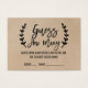 Ces rustiques chic devinent combien de cartes de jeu baisers sont une activité amusante pour une douche nuptiale branchée. Remplissez un bocal avec Hersey's Kisses et demandez à vos invités de deviner combien de bonbons sont dans le bocal. La réponse la plus proche gagne un prix ! Le design se caractérise par une typographie amusante en lettrage manuel avec de délicieuses boucles et des tourbillons entourés d'une simple couronne de branche d'olivier. Veuillez noter que ceci n'est pas imprimé sur du papier kraft réel. C'est un graphisme de haute qualité fait pour ressembler à du papier kraft.