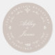 Schick, modern und einfach Rücksendeadresse klassische Rundaufkleber mit dem Text der Zukunft Mr. und Mrs. in weißem, elegantem Drehbuch auf grauem Morgengrauen Hintergrund mit Lorbeeren und anderen rustikalen Dekorationsdetails. Fügen Sie einfach Ihren Namen und Ihre Adresse hinzu. Exklusiv für Sie entworfen von Happy Dolphin Studio. Wenn Sie Hilfe oder passende Produkte benötigen, kontaktieren Sie uns bitte unter happydolphinstudio@outlook.com. Wir helfen Ihnen gerne, Ihre Hochzeit zum schönsten Tag zu machen!