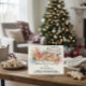 Soft watercolor hues of red, beige, green, and blue blend beautifully with festive details like pinecones, holly, and sprigs of evergreen — creating a cozy, homemade feel that’s perfect for cookie exchanges, holiday parties, or festive gatherings.