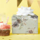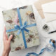 A Rustic Christmas Designed Wrapping Paper With Pinecones, Snow globes, And Candles On A Pastel Green