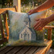 This serene countryside scene captures a quaint white chapel nestled at the end of a winding dirt path, surrounded by blooming wildflowers and softly swaying grasses. Rendered in a delicate watercolor style with painterly splashes and gentle light, the composition evokes peace, nostalgia, and quiet faith. The wildflower meadow—full of bluebells, daisies, and soft greens—creates a dreamy, almost ethereal foreground that leads the viewer’s eye toward the charming steepled church under a calm blue sky. Perfect for evoking a sense of retreat and reflection, this design works beautifully as seasonal decor, especially for spring and Easter themes. It pairs well in cozy cottagecore spaces or country-inspired settings, bringing warmth and spiritual calm to any room. The golden cross atop the steeple and gothic-style arched doorway add vintage architectural charm while maintaining a harmonious balance with the natural surroundings. This is an inviting visual retreat into simplicity, faith, and nature. AI generated artwork.