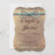 Il a un arc-en-cercle bleu turquoise turquoise imprimé au sommet de l'invitation. Le libellé "Fête des mariées" est très large et en écriture. Cette partie du libellé fait partie de l'arrière - plan et ne peut pas être modifiée. Ils sont parfaits pour les couples de pays et toute personne qui aime un look vintage rustique mais élégant. rustique, pays, marron, vintage, en détresse, élégant, vieux, antique, occidental, cowboy, grange mariage, élégant, arc turquoise, douche pour couple