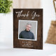 Diese moderne Foto-Ankündigung besticht durch einen rustikalen Hintergrund aus dunklem Holz, ein quadratisches Foto und eine schlichte und dennoch elegante Typografie. Im Inneren Platz für eine personalisierte Danksagung. Sie können diesen Text auch als Einladung zu einem Service oder Feiern verwenden oder Sie können einfach den ganzen Text entfernen, wenn Sie es wünschen, es ist einfach, ihn zu personalisieren, indem Sie auf "Bearbeiten mit dem Design-Tool" klicken.