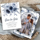 Rustic Dusty Blue Floral Foto Wedding Save The Date