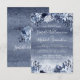Eine indigoblaue Aquarellwäsche schafft einen dramatischen Hintergrund für diese Hochzeitseinladung. Eine Vielzahl von staubblauen Blumen, von dunkelblau bis hellblau, schaffen dramatische Ober- und Untergrenzen an der Vorderseite. Ähnliche Blume schaffen auch auf der Rückseite der Hochzeitseinladungen eine wunderschöne Blumenausstellung. Wegen der dunklen Farbe ist der Text knusprig, hell weiß. Es ist alles bearbeitbar.