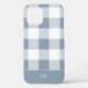 Rustikales Chic Dusty Blue und White Buffalo Kariertes Muster, monogramm iPhone Gehäuse.