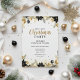 Welcome guests with warmth and style using this beautifully crafted invitation featuring a lush evergreen wreath with golden eucalyptus, black poinsettias, and festive gold ornaments. The natural botanical elements against a soft cream background create a timeless elegance perfect for rustic-chic celebrations, farmhouse-style gatherings, or sophisticated country Christmas parties.