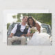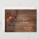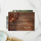 Eine schöne Hochzeitskarte mit einem Herbstbaum mit festlichen Laternenleuchten und Rose auf rustikalem Holzfußboden. Auf der anderen Seite der Karte befindet sich Ihr eigenes Lieblings-Foto (wenn Sie Ihr eigenes Foto nicht verwenden, können Sie das Template-Foto löschen, um ein dunkles Holzbild zu zeigen).