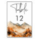 Rustic Fall Mountain Scene Watercolor Wedding Tischnummer