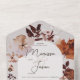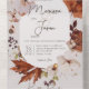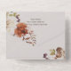 AVAILABLE WITH OR WITHOUT A QR CODE TO SCAN OR WITH OR WITHOUT DINNER SELECTION OPTIONS. This design features soft autumn wreath of tan, brown, rust, purple and cream on a soft gray beige background. Personalized All-In-One invitations are a unique combination of both a beautifully printed custom invitation with an easy to tear off perforated RSVP postcard. And they are so easy to use! You simply fold, then seal the back flap with the three included clear stickers, and mail. And when your guests receive your custom invite, they just tear the perforated RSVP Card off and drop it back in the mail to you!