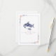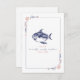 Mariage RSVP avec illustration de poisson avec bordure de coquillages botaniques. Le jeu de couleurs est rouge et bleu.