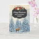 Frohe Weihnachten für Nichte-Karte mit rustikalem Chalkboard-Muster und schneebedeckten Wasserfarbenwald-Szene mit Hirsch und Vögeln.