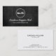 Ein klassisches Logo einer Gabel & Messer, die in einen Kreis eingefasst sind, wird zur Identität für Ihr Unternehmen oder Ihre persönliche Marke. Set auf rustikalem schwarzem Holzboden, diese Visitenkartenvorlage ist ideal für Koch, Restaurants, Diners, Cafés, Feinschmecker, Blogger, Bars, Köche, Bäckereien, etc. © 1201AM DESIGNS