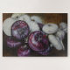 A hyperrealistic still life painting featuring purple onions and white garlic bulbs on a warm textured background. Created by artist Lukian, this composition captures the natural beauty of humble ingredients with bold color and lifelike detail. Perfect for kitchens, cafes, or food lovers who appreciate fine realism and rustic charm.