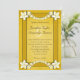 Flore d'or rustique © Sunny Mars Designs. Personnalisable coutume vintage rouille élégants invitations de mariage avec bordures de ruban jaune, moderne joli fleurs blanches sur vieux arrière - plan de papier parchemin.