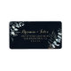 Dieses rustikale goldblütenblaue Hochzeitslabel ist perfekt für eine einfache Hochzeit. Dieses künstlerische Design zeigt handgezeichnet goldene Blüten- und Aquarellblütenblätterung in einem dunkelblauen Hintergrund und inspiriere die natürliche Schönheit.