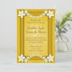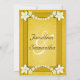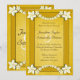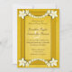 Rustikale goldene Blüte © Sunny Mars Designs. Individuell anpassbare formelle Vintage rostige elegante Hochzeitsessen Probe Einladungen mit gelben Schleifen, moderne hübsche weiße Blume auf alten Pergamentpapier Hintergrund.