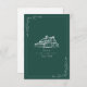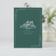 Mariage RSVP avec illustration de grange avec bordure botanique. L'Arrière - plan est vert émeraude.