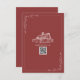 Mariage RSVP avec illustration de grange rustique avec bordure botanique. L'Arrière - plan est rouge muet. Personnalisez le texte et le code QR.