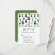 Eine Hochzeitskarte mit einem Haufen niedlicher grüner Kakteen in einem sich wiederholenden Muster. Grüne Kakteen in einem dunkelblauen Topf aus Blume. Kleine dekorative Dreiecke dazwischen.