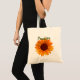 Rustic Happy Sunflower with Name Bridesmaid Tote Bag A sweet minimalist design for your bridal party. Personalize it with their name. The artwork feature a rustic yellow orange sunflower and the text in green script with the name on the front and the title bridesmaid on the back. Perfekt for summer sunflower and yellow orange and green floral wedding theme color pallis. #rustic #happy #sunflower #bridesmaid #totebag #wedding #minimalism
