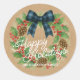 Rustic Holly Wreath Blue Checkered Bow Runder Aufkleber