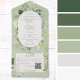 MIT ODER OHNE QR-CODE IM UAWG BEREICH ERHÄLTLICH. Diese elegante und einladende Hochzeitseinladung besticht durch eine romantische Aquarellgrenze aus Efeu, Farnen und üppiger Vegetation auf einem hellgrünen Hintergrund. Ovale und klassische Schriftart in Creme sorgen für eine gelungene Mischung aus traditionellem und botanischem Charme - ideal für Gartenhochzeiten, Frühjahr- oder Sommerveranstaltungen und naturlich inspirierte Feste. Erstellt von der einfachen Farmhouse Press.