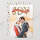 Un beau carte photo de vacances avec un ruban rustique et une joie kraft avec des détails de pin et de baies.