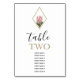 Dieses Design zeichnet sich durch eine rosa rustikale King Protea Blume aus. Die King Protea Blume mit ihren grünen Blätter ist elegant gerahmt mit einem goldenen Rahmen in der Farbe Diamant. Die königliche Protea Blume und ihre Grünanlage schaffen ein rustikales, blumengeschmücktes Landschaftsbild. Rustikales Hochzeitsdesign mit eleganten, modernen Elementen. Auch die passenden Hochzeitseinladungen und andere Schreibwaren sind verfügbar. Passen Sie die Anzahl an und erwerben Sie jede Tabellennummer individuell, je nachdem, wie viele Tischnummern Sie benötigen.