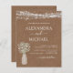 Rustikales Bauernhaus String Lights und Jar of Gipskraut Wedding Invitations on Kraft Papier Hintergrund - beinhaltet eine schöne und elegante Schrift Typografie mit modernem Country Farm House Sparkle für die besondere Hochzeitsfeier.