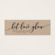 Diese rustikale Mini-Kraftkarte mit den Worten "lass Liebe glühen" in dunkelgrauem Schriftsatz macht eine großartige Gastgeschenk Hochzeit Tag. Es ist einfach zu personalisieren; ersetzen Sie einfach den Platzhalter-Text, um Ihre eigenen Informationen hinzuzufügen. Für weitere Optionen, wie zum Beispiel den Schriftart, die Textgröße oder den Abstand zwischen den Buchstaben zu ändern, klicken Sie auf die Schaltfläche "Anpassen". *Bitte beachten Sie, dass das Zazzle-Wasserzeichen, das in der Zoomvorschau angezeigt wird, NICHT auf dem gedruckten Endprodukt erscheint. © Rosewood and Citrus