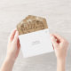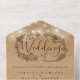 All in one wedding invitation featuring pretty string lights, hand-drawn floral garland and chic typography on a rustic kraft background. The invitation includes a perforated RSVP card with your wedding website QR code and details. Designed by Thisisnotme©