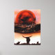 Die Rustikale Longhorn Ranch Canvas Print des Künstlers Jason Girard in dunkelbraunen bis rostigen Orangenfarben zeigt eine längliche Rinder-Ranch mit Zaun- und Mondlandschaft für die rustikalen Kunstliebhaber Wohngestaltung, die auf einem Bauernhof oder einer Ranch leben und Vieh haben.
