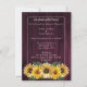 Das Abendessen mit der Probe lädt die Gäste mit einer einladenden Einladung zur Hochzeitsfeier in der Probe der Rustikalen Magenta Sonnenblume ein. Das einladende Design besticht durch einen rustikalen Holzboden mit einem eleganten Blumenstrauß. Personalisieren Sie die Namen des Bräutigams und der Braut zusammen mit den Details zum Abendessen der Probe. Mit diesem Design sind auch weitere Hochzeitswaren erhältlich.