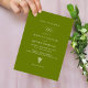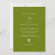This rustic modern wedding invitation features a bright olive green background with clean white typography. The design mixes natural charm with a simple, contemporary layout. Its bold green tone creates an eye-catching and stylish look, while the minimalist style keeps the invitation elegant and easy to read. Fully customizable with your wedding details, this invitation is ideal for couples who want a fresh, natural, and modern wedding theme.
