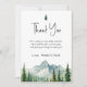 Un "merci" sincère des grands extérieurs ! 🌲 🏔️ Ce carte de remerciements magnifiquement conçu présente un paysage de montagne et de forêt d'aquarelles sereines, parfait pour exprimer sa gratitude après un baby shower inspiré par la nature. Une façon charmante d'envoyer des remerciements chaleureux à la famille et aux amis!