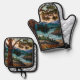 Rustic mountain range landscape stain glass ofenhandschuh & Topflappen-Set