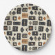 Earthy geometric pattern paper plate inspired by tribal mudcloth textiles, featuring hand-painted rectangles, diamonds, and triangles in charcoal black and terracotta on a textured beige background. A warm boho design ideal for rustic décor lovers, artisan style fans, and anyone drawn to earthy geometric aesthetics.