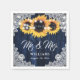 Rustic Navy Blue Sunflower Lace Mr and Mrs Wedding Serviette