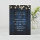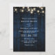 Rustic Navy Blue Wood String Light QR Code Wedding Einladung