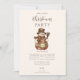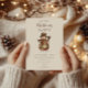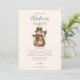 A cozy rustic Christmas design featuring a charming snowman dressed in a quilted patchwork coat, plaid scarf, and country hat. The warm earthy tones and vintage textures create a nostalgic farmhouse feel, perfect for winter gatherings, barn parties, or cozy family celebrations. A timeless and heartwarming invitation that captures the spirit of a country Christmas.