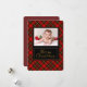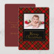 Un arrière - plan confortable en plaid rouge prépare le terrain pour un Noël de campagne ludique pour la famille et les amis. Changez et personnalisez cette carte avec une photo de votre famille avec un arrière - plan à motif rouge, vert et noir chaud et votre accueil à l'envers.