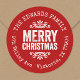 Erschwingliche, individuell bedruckte Rundaufkleber mit Rücksendeadresse personalisiert mit Ihrem Familiennamen und Ihrer Rücksendeadresse. Dieses rustikale, moderne Urlaubsdesign zeichnet sich durch eine bedrückte MERRY CHRISTMAS Schrift auf einem roten Hintergrund aus. Verwenden Sie die Designtools, um eine beliebige Hintergrundfarbe auszuwählen und Schriftart und Farben zu bearbeiten, um Ihre eigenen Rücksendeadressen-Aufkleber zu gestalten.
