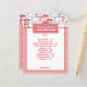 Affichez vos délicieuses offres dans le style avec cet adorable Menu de boulangerie maison! Doté d'une charmante bordure rouge en vichy illustrations joyeuses sur le thème de la cuisine et d'un en-tête "Home Bakery - Pain, biscuits et tartes", ce modèle de menu apporte une ambiance chaleureuse et faite maison à toute vente de gâteaux, pop-up shop, ou café. Chaque article, des pains classiques, des tartes comme la pomme et le pacan aux biscuits préférés comme la puce à chocolat et la tourte d'avoine, est listé avec des prix, ce qui facilite la navigation des clients vers vos délicieuses friandises. Imprimé sur un carton de haute qualité, ce panneau de menu est non seulement pratique mais aussi un complément décoratif à votre installation. Placez-le dans un cadre sur votre comptoir ou présentez-le sur un stand pour attirer l’attention de vos clients et leur donner un regard clair et attrayant sur toutes vos pâtisseries. Idéal pour les propriétaires de petites entreprises, les amateurs de pâtisseries et de desserts qui souhaitent ajouter une touche professionnelle à un charme maison.